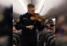 Un jandarm a interpretat la vioară imnul național într-un avion al companiei TAROM, la peste 10.000 de metri altitudine. Momentul a fost postat pe...