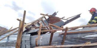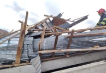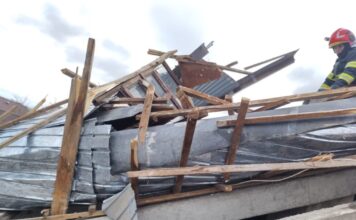 Vântul puternic a desprins învelitoarea acoperișului unui bloc din Tomești