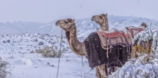 VIDEO-FOTO „Este fără precedent” – Șoc pentru cămile: zăpadă în deșert / Explicația meteorologilor