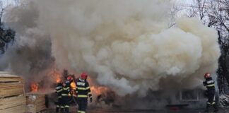 Intervenție pentru stingerea unui incendiu izbucnit la o rulotă parcată în curtea unei fabrici...