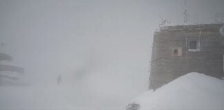 Troiene și viscol la Stația Meteorologică de pe Vârful Omu