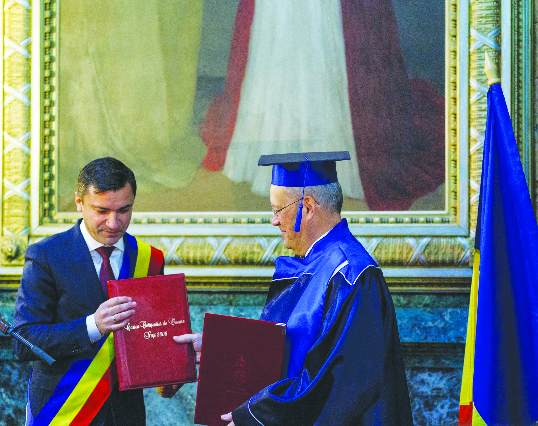 Avid de festivităţi, mai ceva ca găina de grăunţe, primarul Chirica n-a putut rata aflarea în tîrg a lui Dumitru Prunariu, singurul nostru cosmonaut. Cu care s-a pozat în toate poziţiile, mai puţin în şpagat ( nu, şpagatul nu e neam cu şpaga ). Ce şi-o fi zis ediluţul nostru … ? Poate află de la cosmonaut care e efectul lipsei gravitaţiei asupra gravităţii dosarului penal în care dom’ tovarăş Mişu e cercetat de DNA. Eventual şi asupra gravidităţii posibilelor viitoare dosare penale.