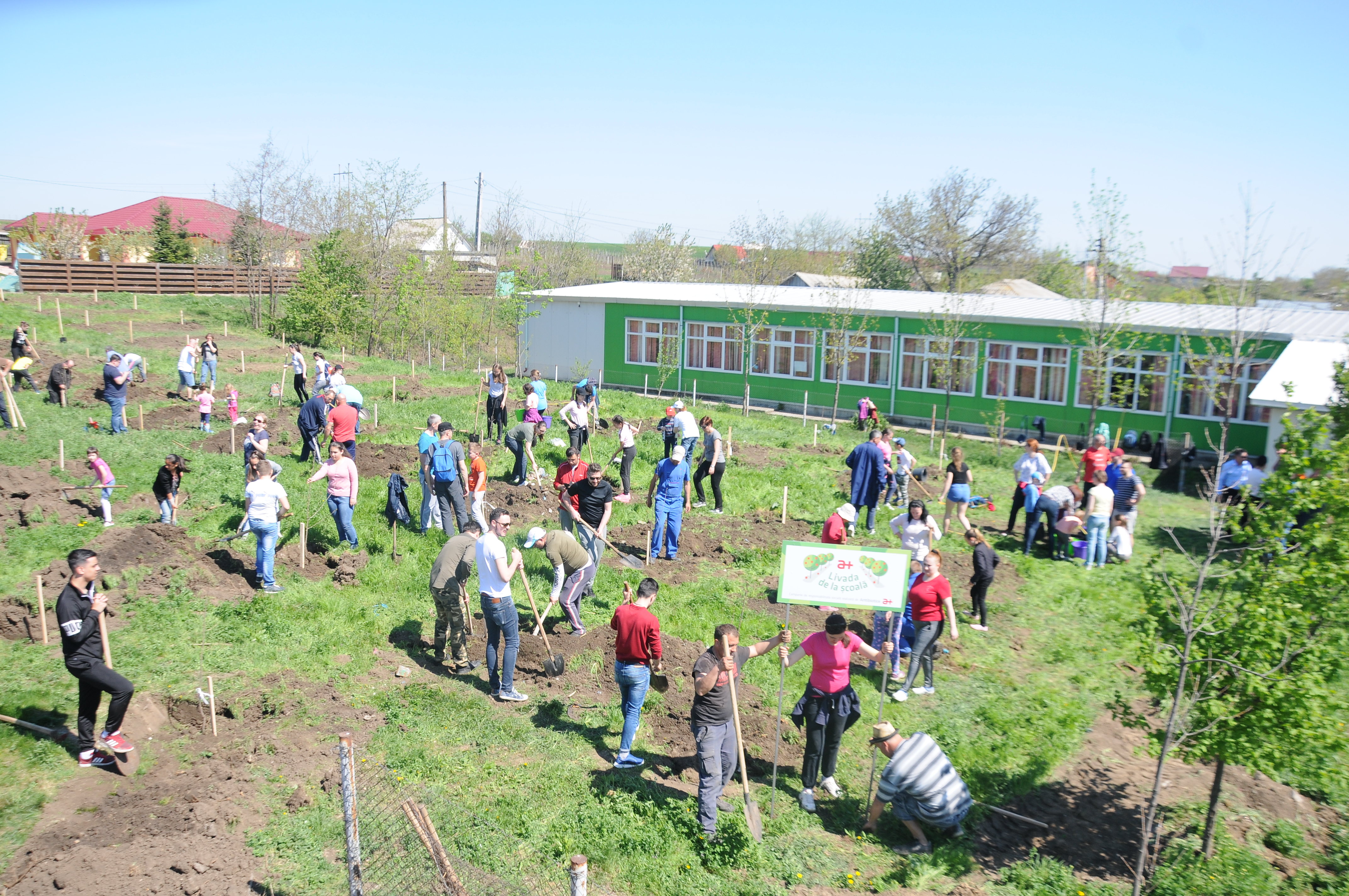 Prima etapă de plantare a fost derulată în parteneriat cu Primăria comunei Lețcani care a pus la dispoziție terenurile din curtea școlilor și a sprijinitamenajarea acestora.
