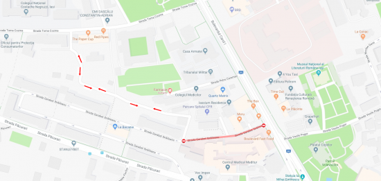 În zilele și intervalele orare menționate traficul rutier pe strada Garabet Ibrăileanu va fi oprit, iar autovehiculele vor putea circula pe rutele marcate în schițele atașate.