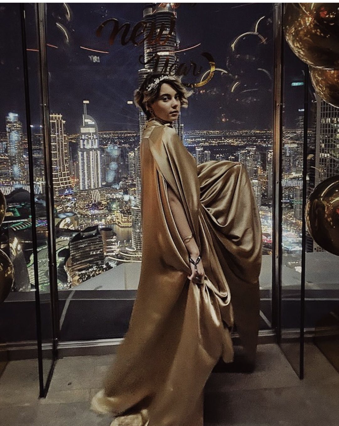 Extrem de frumoasă și creativă, tânăra a apărut la petrecerea de Revelion într-o ținută inedită, în care a arătat superb, o rochie aurie, cu un design unicat. Ea a postat mai multe fotografii din vacanța de vis pe contul ei de Instagram, k.sworld. Mai mult decât atât, contul ei este bogat în postări foarte incitante, care i-au adus deja multă popularitate pe celebra rețea de socializare.
