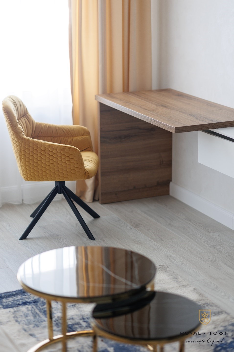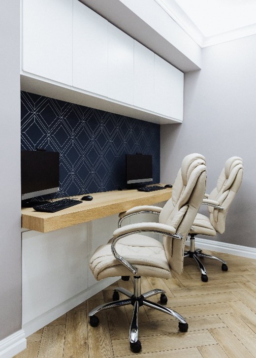 - Soluție: Dacă folosești o cameră separată pentru birou, asigură-te că aceasta este cât mai departe de zonele aglomerate sau zgomotoase ale apartamentului, precum bucătăria sau holul. Dacă biroul este amplasat în dormitor sau living, folosește un separator de cameră sau o bibliotecă deschisă pentru a delimita vizual spațiul de lucru.
