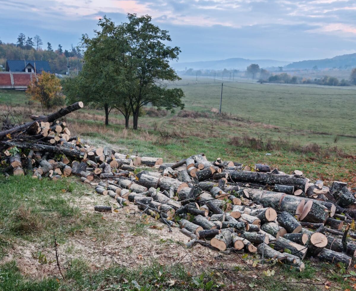 Pe 18 octombrie, la doar o zi după transport, martorii din zonă au surprins în fața gospodăriei primarului resturile de lemn descărcate, iar o parte dintre ele erau deja tăiate și puse la uscat.