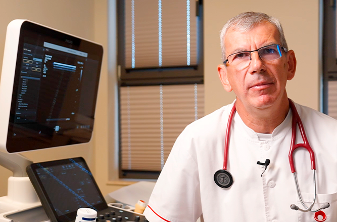 „Pentru a ține pasul cu noile cuceriri tehnologice din domeniul Cardiologiei, am instalat în laboratorul de Cardiologie intervențională noul angiograf Philips Azurion 7, iar în laboratorul de ecocardiografie noile aparate Philips Epiq Elite și Philips Affiniti. Noutăți tehnologice sunt multe. Le-aș rezuma prin faptul că, la ora actuală, inteligența artificială pătrunde tot mai mult în aceste dispozitive, ajutând atât la captarea imaginilor, cât și la interpretarea lor. În final, asistarea medicului face diagnosticul mult mai rapid și mult mai sigur pentru pacient. Ca investigații cu aceste aparate, vom continua vechea gamă și anume: ecografia bidimensională, explorarea Doppler atât a cordului, cât și a vaselor de sânge, ecografia tridimensională, ecografia de contrast. Dintre tehnicile speciale, aș menționa speckle tracking atât la nivel ventricular, dar și la nivelul atriului stâng, tehnică utilizată atât în cercetarea medicală, dar și pentru o serie de categorii speciale de pacienți, cum ar fi, de exemplu, pacientul oncologic. Scopul îl reprezintă depistarea insuficienței cardiace la pacienții care primesc chimioterapie în stadiul incipient, când tot procesul poate fi reversibil. În ceea ce privește ecografia de contrast, ne dorim să o utilizăm pe scară tot mai largă, atât la nivelul inimii pentru diagnosticul cardiopatiei ischemice, dar și la nivelul altor organe. Îmi doresc să menționez în mod special noua sondă Philips de ecografie transesofagiană, cu un design inovator, care face ca investigația să fie mult mai ușor suportată de către pacient, sedarea devenind deseori inutilă. Prin toate aceste tehnici, dorim să menținem aceleași înalte standarde de diagnostic și tratament pentru pacienții noștri”, a declarat Dr. Dan Iliescu, medic primar Cardiologie, Directorul medical al Spitalului de Cardiologie Clinică și Intervențională Arcadia.
