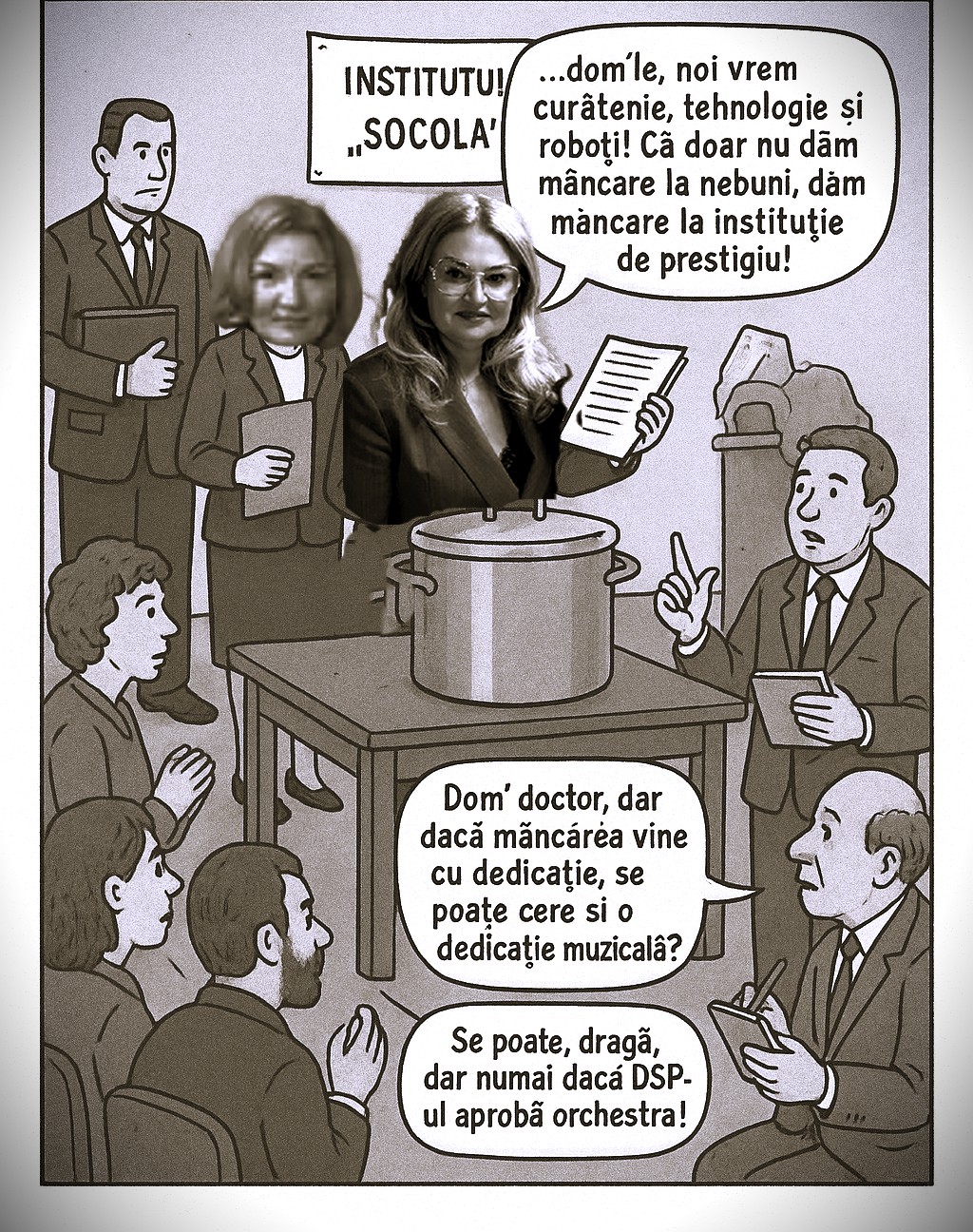 – „Dom’le, noi vrem curățenie, tehnologie și roboți! Că doar nu dăm mâncare la nebuni, dăm mâncare la instituție de prestigiu!”