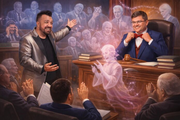 Martorii apăreau și dispăreau ca fantome: unul povestea despre ședințe de CJ, altul despre pisica președintelui… Vlad Alibaba lua notițe ca pentru scenă, aplaudând fiecare absurditate.