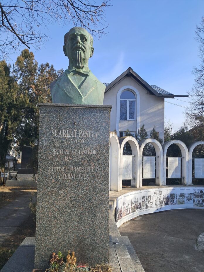 Iașul, oraș care își revendică istoria la fiecare colț de stradă, a reușit performanța rușinoasă de a-și evacua unul dintre cei mai mari binefăcători chiar din pământul pe care acesta l-a dăruit. Scarlat Pastia, fost primar, filantrop și ctitor al Cimitirului Eternitatea, nu mai are mormânt. Osemintele lui au fost scoase, memoria i-a fost ștearsă metodic, iar locul de veci a fost „recuperat” pentru morți fără nume și fără legătură cu istoria orașului. Ironia este absolută: fondatorul celui de-al doilea cimitir ca mărime din România nu mai are unde să se odihnească.  Într-un oraș care se proclamă capitală culturală, Pastia a ajuns un sac de oase mutat la marginea indiferenței instituționale. Cavoul în care fusese înhumat legal în 1900 a fost vândut, plăcile comemorative au fost date jos, busturile au dispărut, iar ultima dovadă a existenței sale funerare zace sprijinită neglijent de un soclu, gata să fie furată sau aruncată. Totul s-a petrecut sub ochii administrațiilor care s-au succedat, într-o tăcere vinovată, de parcă uitarea ar fi fost o politică publică. Scarlat Pastia a donat Iașului zeci de hectare de teren, a construit din averea proprie infrastructura orașului modern, a condus primăria fără salariu și a murit sărac, convins că binele făcut va rămâne. La mai bine de un secol, Iașul îi întoarce spatele definitiv.
