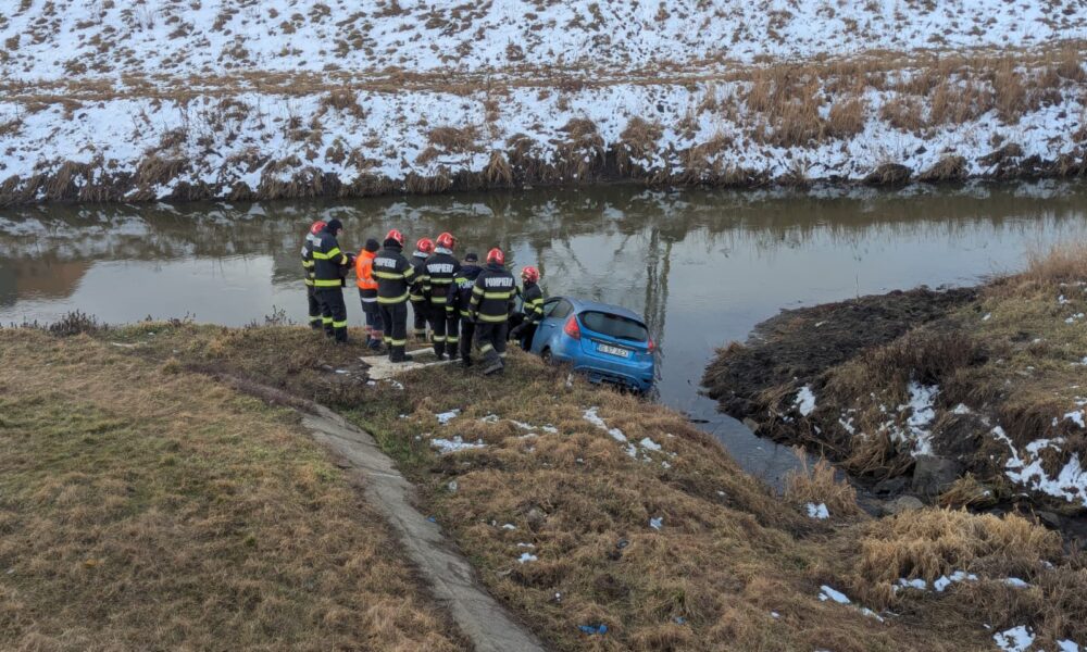 Pompierii acționează pentru asigurarea măsurilor de prevenire, verificarea zonei și sprijinirea operațiunilor pentru scoaterea autoturismului în condiții de siguranță. Cazul a rămas în atenția autorităților competente pentru stabilirea împrejurărilor producerii evenimentului.