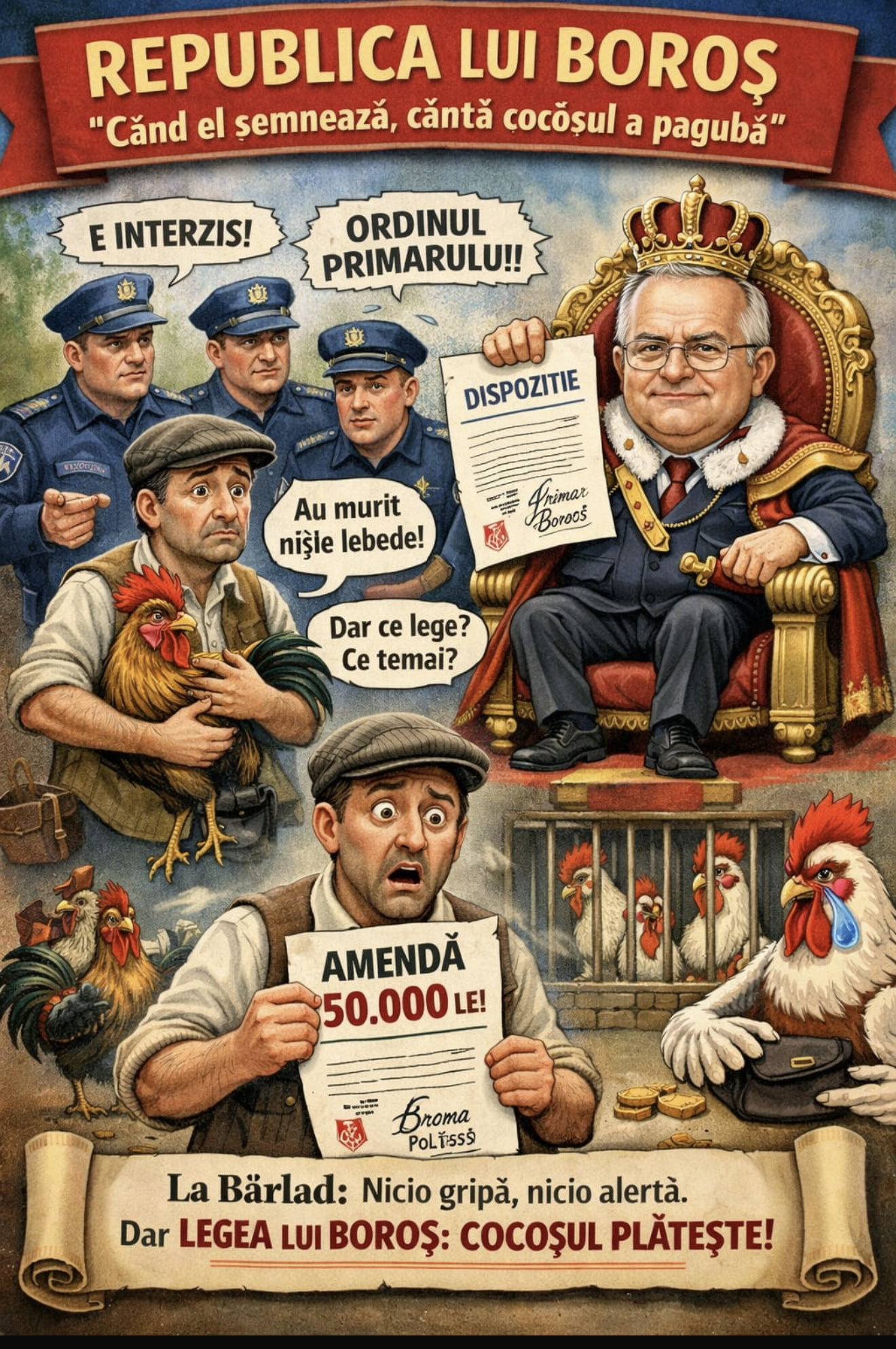Omul cere lucruri periculoase: lege, temei, comunicat oficial, gripă aviară. Primește o foaie. O foaie importantă, semnată de Primarul Boroș, Regele Chestiilor Aviare.Nu e publicată, nu e explicată, nu e verificabilă — dar e semnată. Deci e lege.