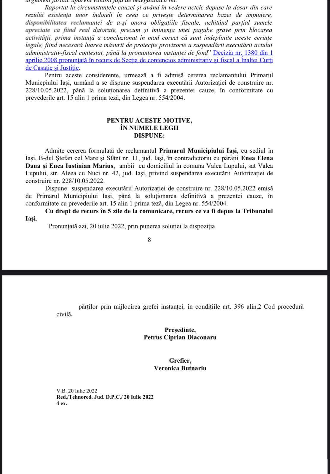 În pofida expertizei judecătorești care a evidențiat cinci puncte de nelegalitate ale autorizației nr. 228/2022, Enea a încercat să tergiverseze procesul cerând o nouă expertiză, care însă a fost respinsă de Judecătoria Iași. Astfel, raportul inițial, care confirmă ilegalitatea autorizației, a rămas în vigoare și este în curs de pronunțare.