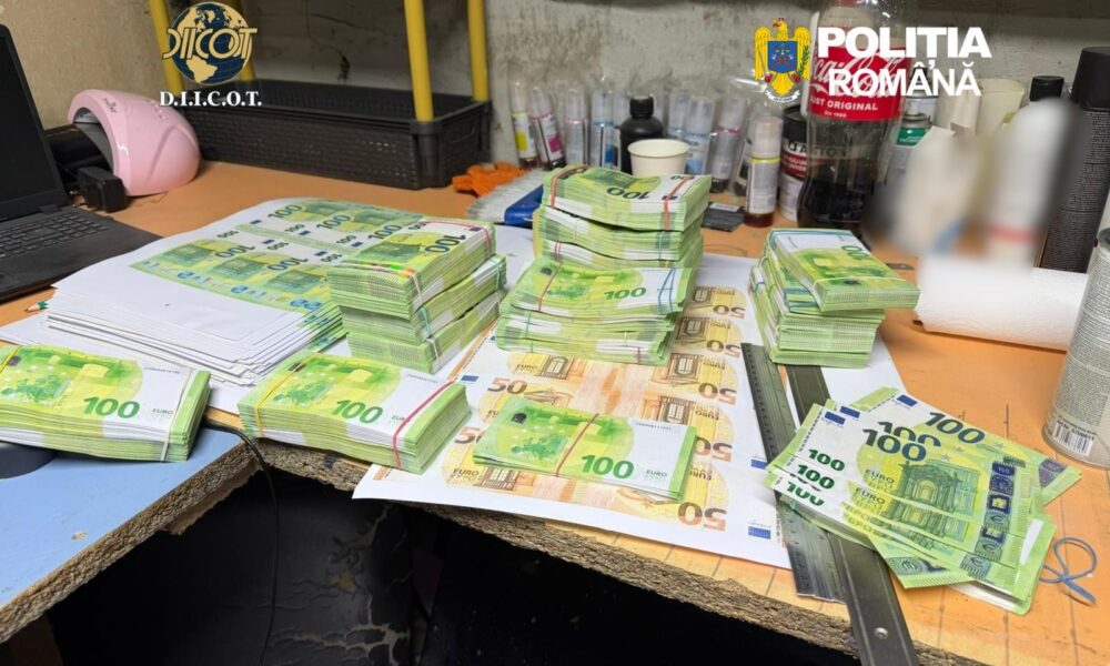 Rețea de falsificatori de bani destructurată la Iași. Peste 1,2 milioane de euro falși descoperiți într-o „fabrică” clandestină