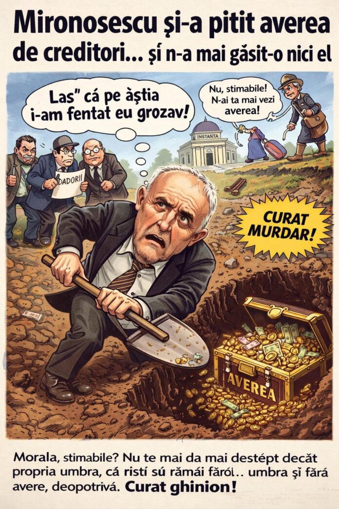 Finalul? Curat comedie! Omul câștigă pe procedură, dar pierde pe fond — adică triumfă în vorbe și e bătut în fapte. Un șah mat servit singur, fără adversar, fără galerie, doar cu ecou în sală.