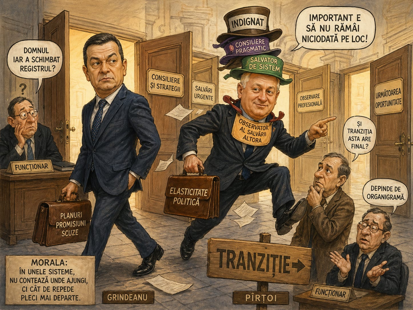 Într-o țărișoară unde funcțiile se schimbau mai repede decât anotimpurile, trăia un șmecher cu pălărie de activist și mers grăbit spre următoarea oportunitate.