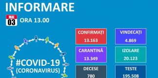 3 Mai: 780 de decese și 13.163 persoane confirmate cu COVID-19...